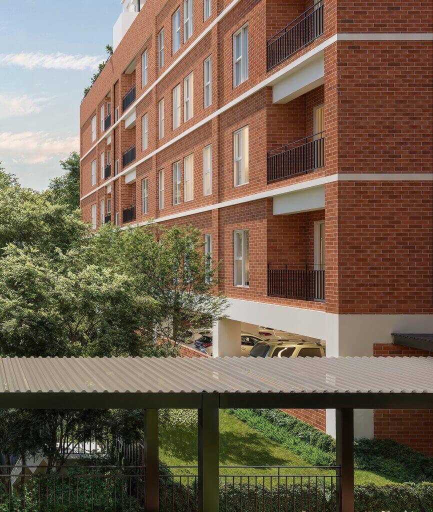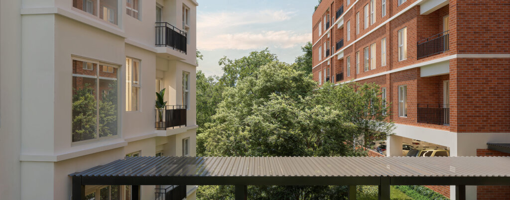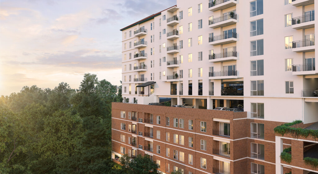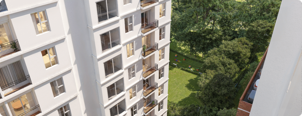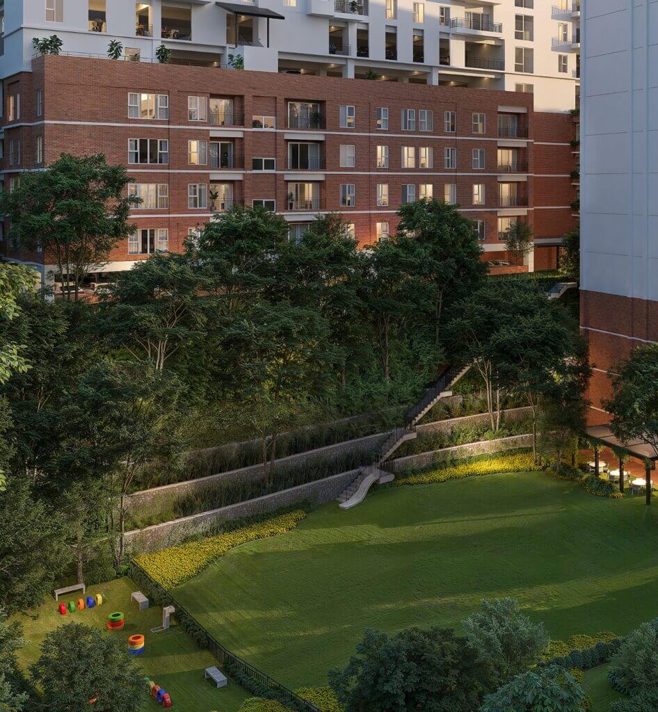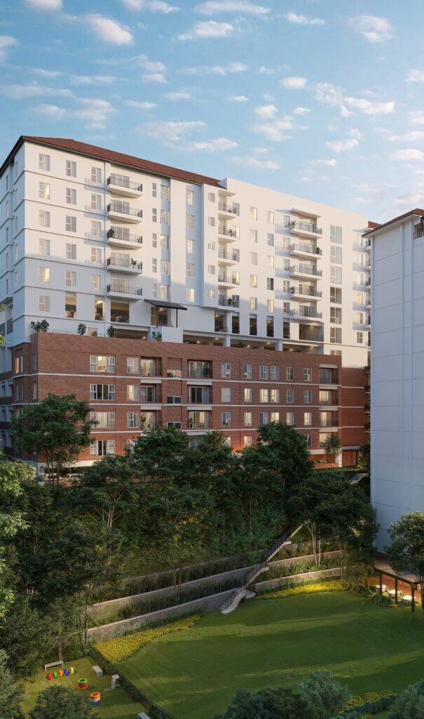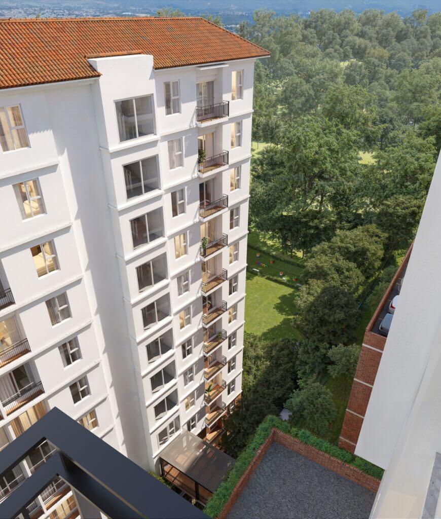 Explora nuestros apartamentos, amenidades y el parque verde interior de más de 2,000 m² a través de un recorrido virtual 360°.